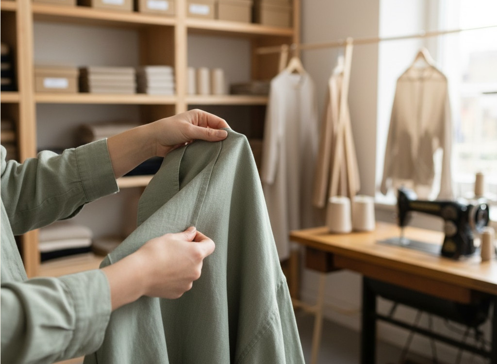 W Tekstyliach (Slow Fashion): Oznacza to wyłączność na certyfikowane włókna naturalne, takie jak bawełna organiczna (GOTS), len i Tencel™. Wprowadzamy na rynek wyłącznie produkty wytworzone z materiałów, które minimalizują zużycie wody, energii i eliminują szkodliwe substancje chemiczne.